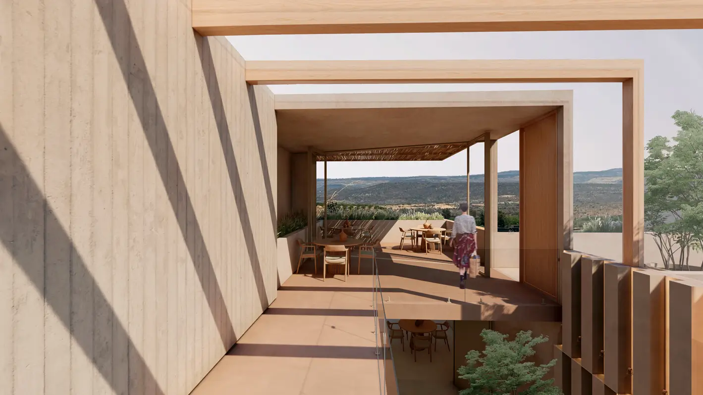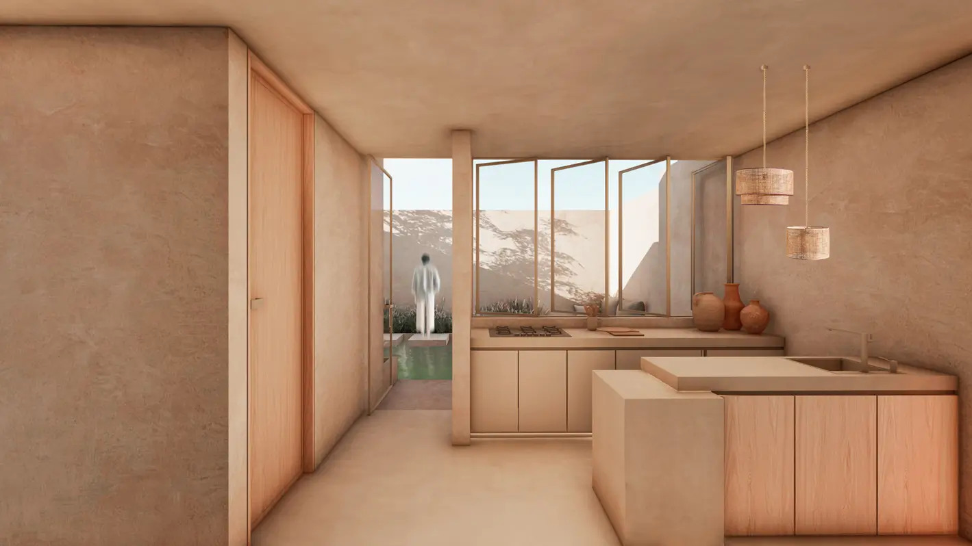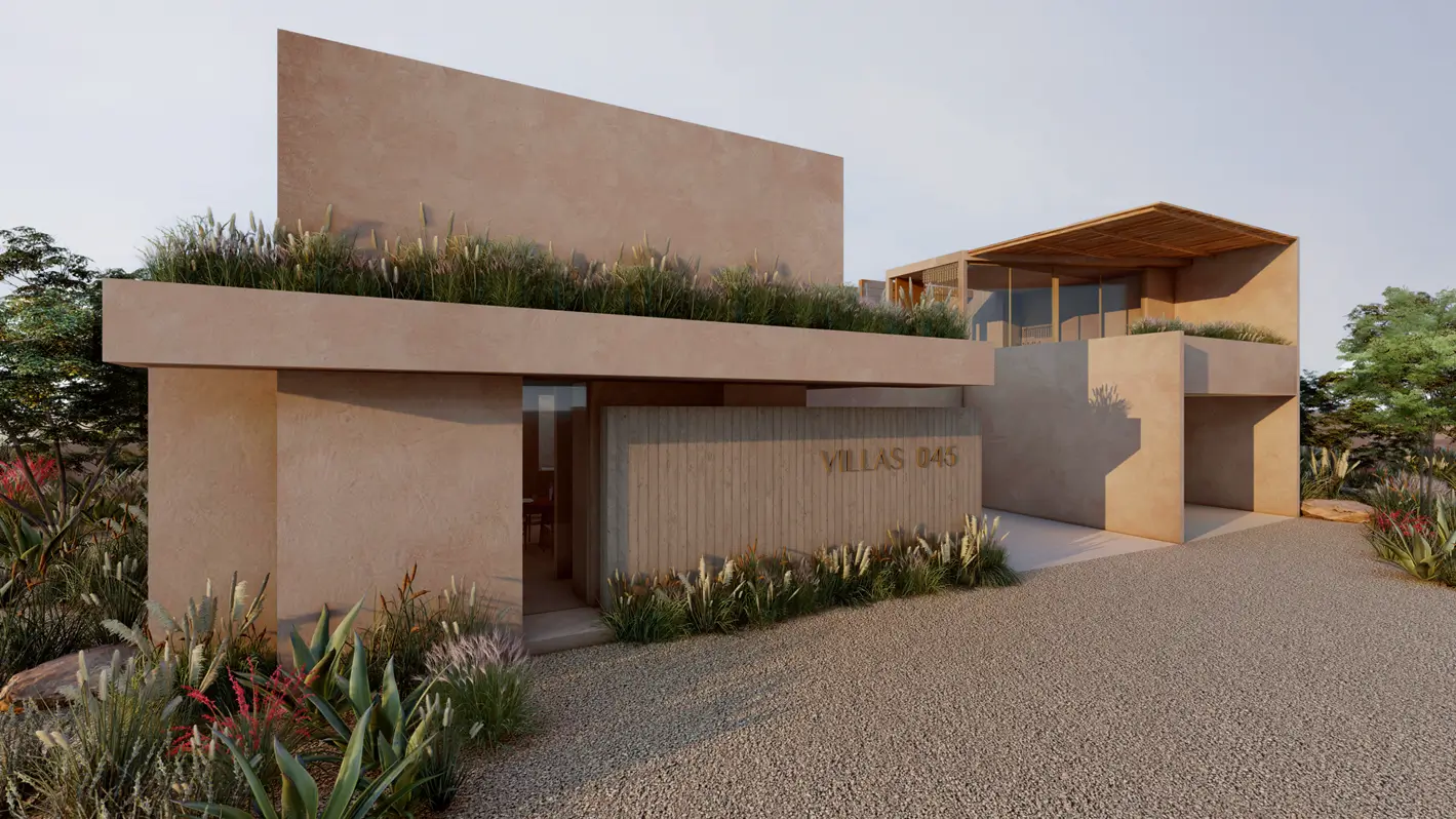 Los materiales en tono arena dialogan de manera armónica con la vegetación árida del contexto, logrando una integración sutil y respetuosa con el paisaje natural. Villas O45 es el equilibrio perfecto entre diseño, confort y esencia del lugar.