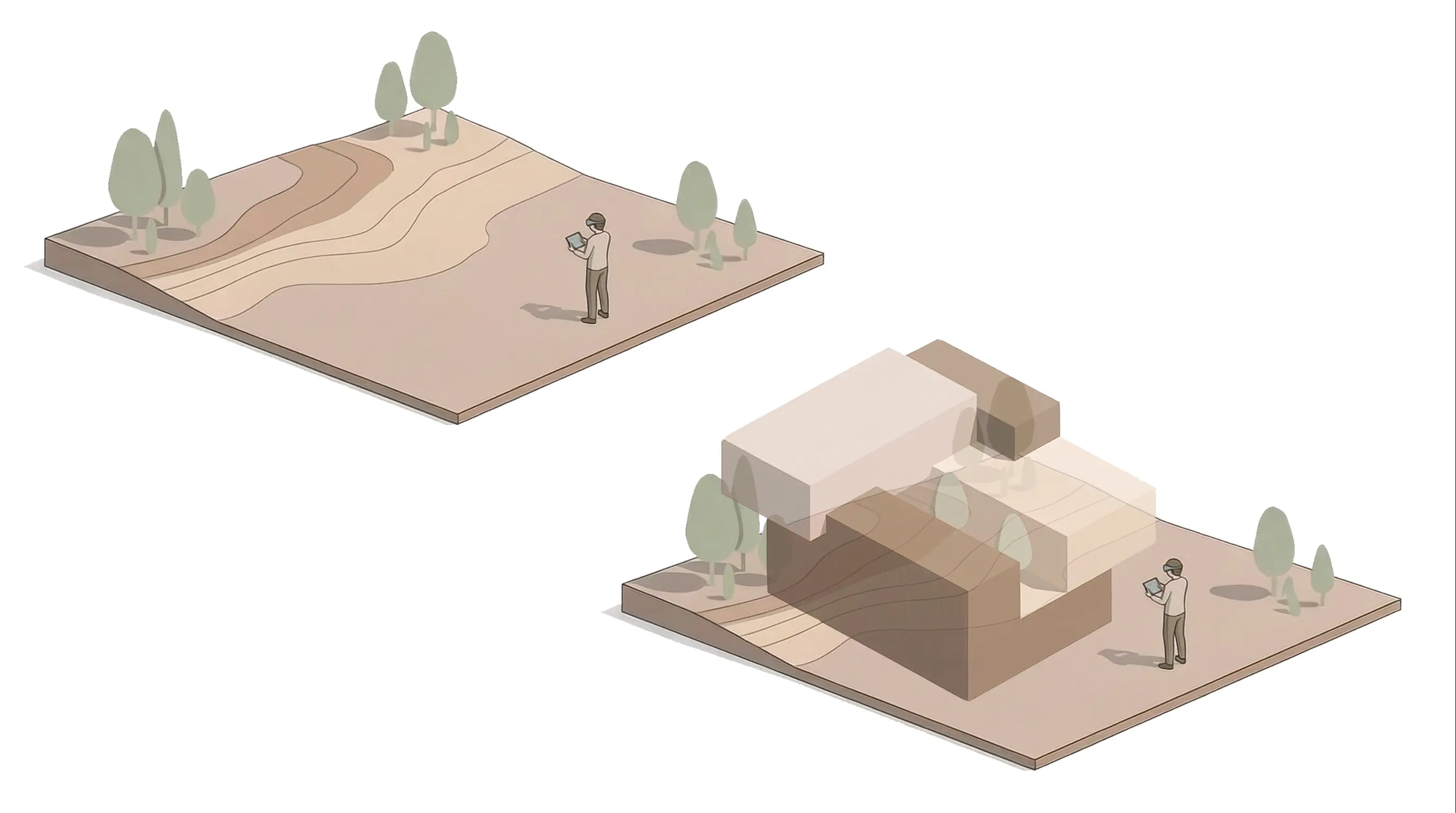 Recorremos junto contigo el sitio donde se diseñará tu proyecto, para descubrir el contexto y así diseñar espacios que generen un vínculo real con el lugar. El proceso de elección de materiales se realizará en el sitio y en conjunto contigo.